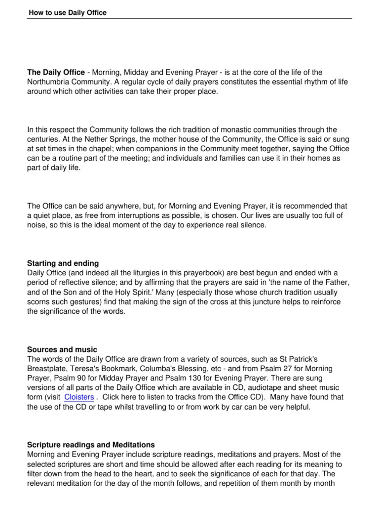 Or select one of the links below. The daily office primarily consists of morning and evening prayer although there are other prayer timesservices such as noonday prayer and compline which is prayer. The mission of st.